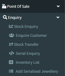 1. Go to the back-office and click on the option Point Of Sale - Enquiry and then click on the option Add Serilalised Jewellery.