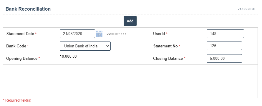 3. A New Bank Reconciliation will open the new page and enter the manually all details.