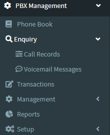 1. Go to the back-office and click on the option PBX Management - Enquiry and then click on the option Call Records.