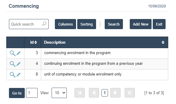 3. The following image shows the Commencing Id and Description Details.