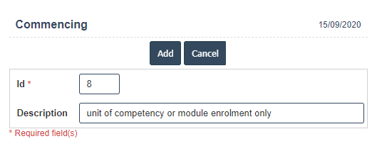 6. Once you have completed the Commencing details, click the Add button as shown below.