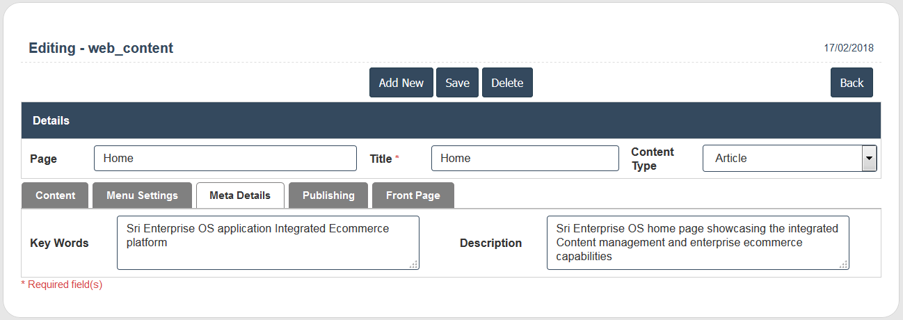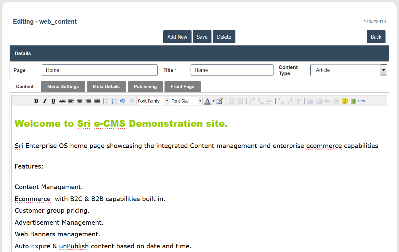 Sri Web Content Management System is a custom-built CMS solution for enterprise businesses requiring an online presence with an easy to use content management capability.