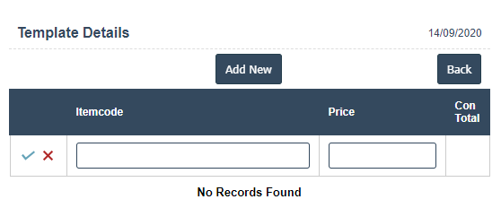 4. Click on Add New button then Itemcode, Price and Con Total fill the details then click on