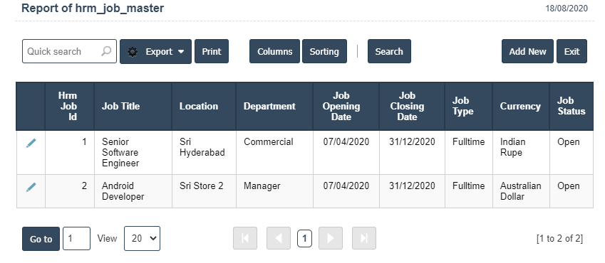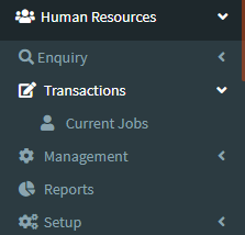 1.Go to the back-office and click on the option Human Resources - Transactions and then click on the option Current Jobs.