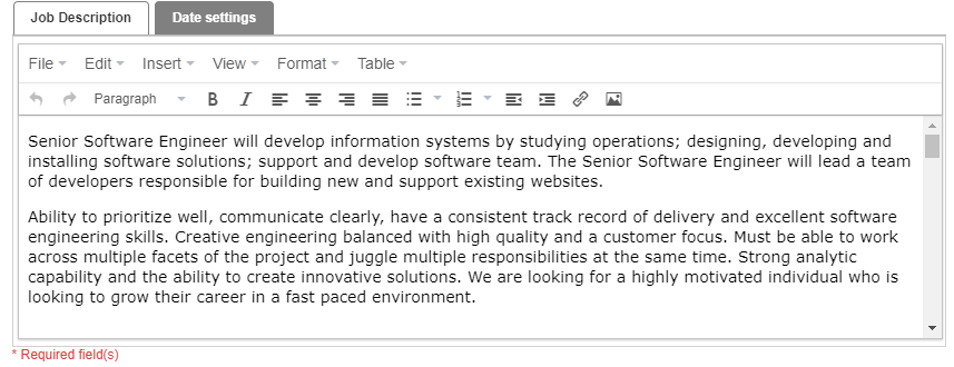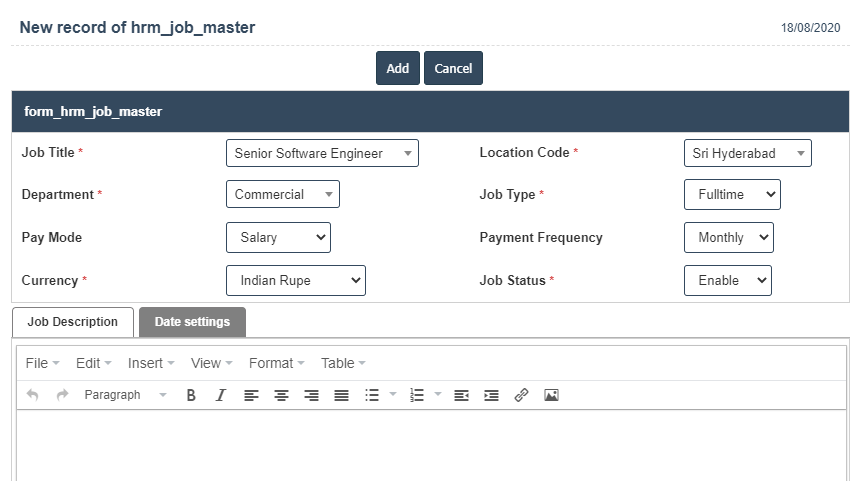 - Job Type - Full time, Part time and causal.