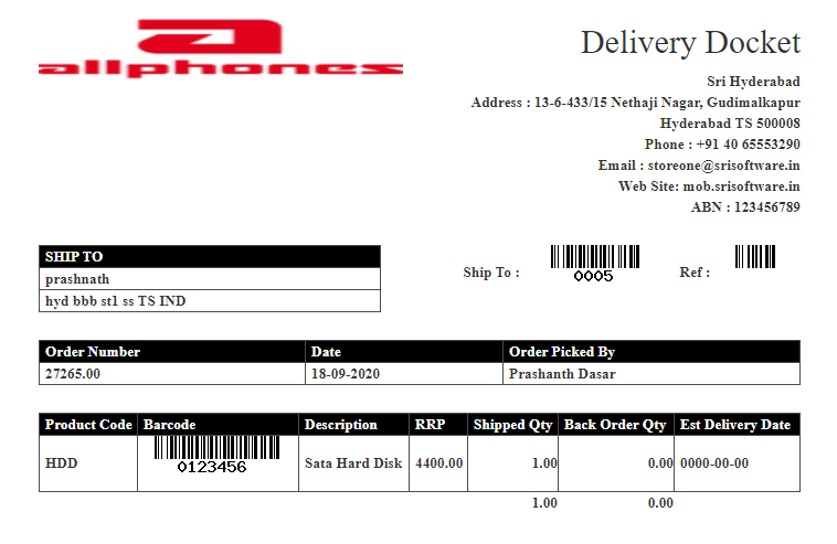 15. Delivery Docket Print.