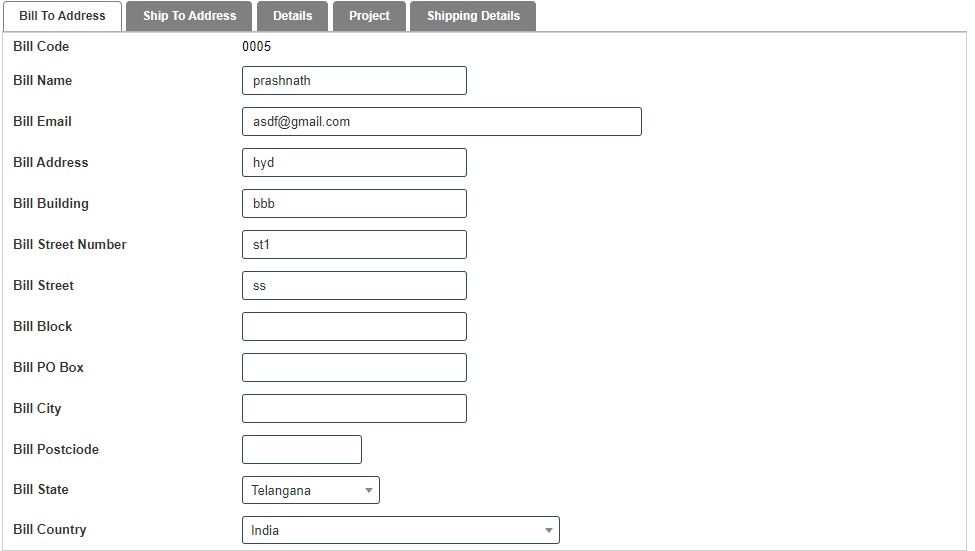 7. Click on Bill To Address then fill the details.
