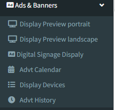 1. Go to the Back Office Menu Ads & Banners and click on the option Digital Signage Display