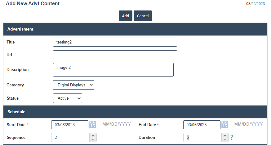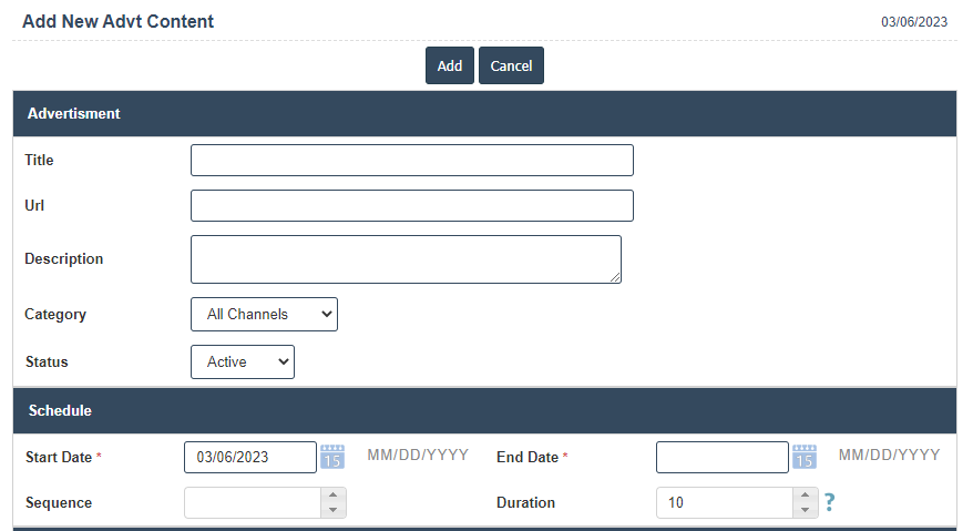 1.Start Date: Enter the start date should be the active date shown as the display schedule for advertising