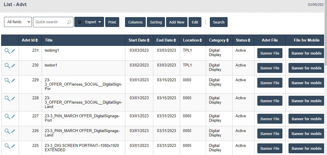 2. Status: Advt content banner is active /inactive in Advt master.
