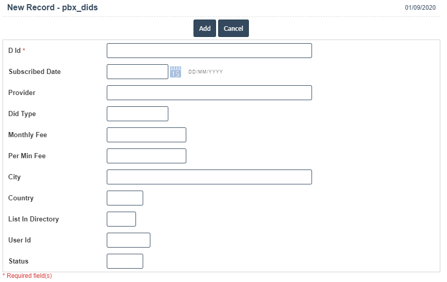 2. Add New : This Button is used to Add New Direct Dial In Numbers.