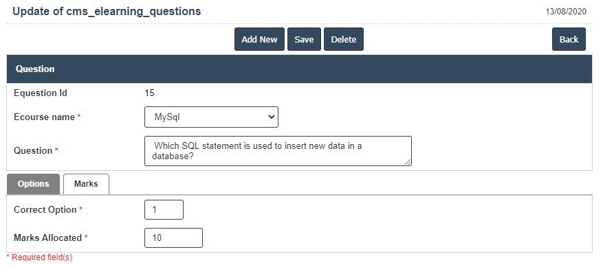 3. A New E-learning Questions will open the new page and then fill the all details.