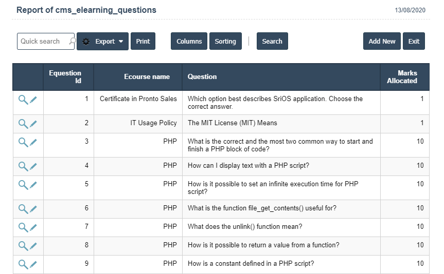 2. To add a new E-learning Questions click on the Add New Button as shown below.