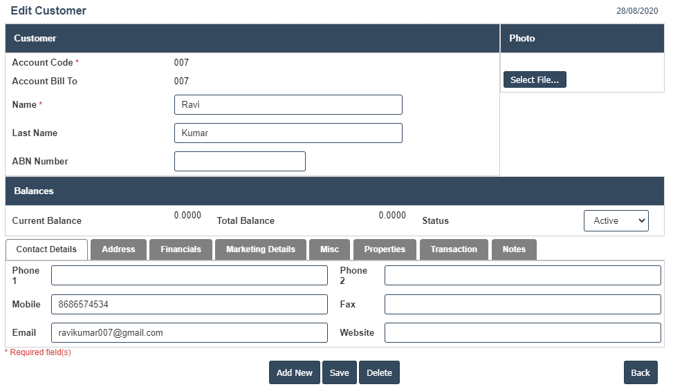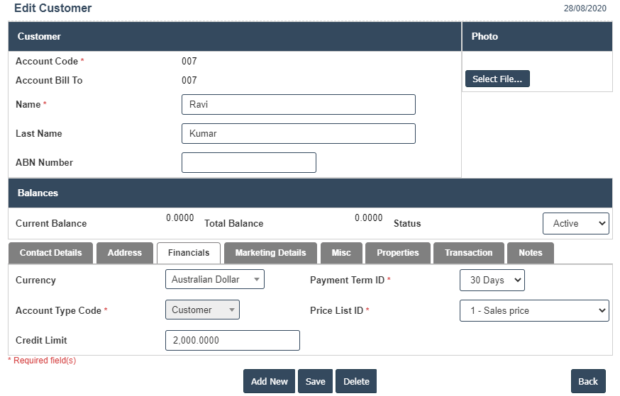 2. This Application is used for Adding New Customer with Account code,Account Bill to,Name, Last Name and ABN Number etc.