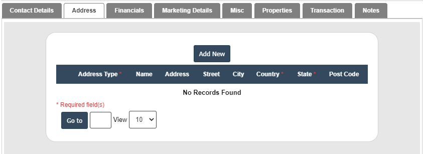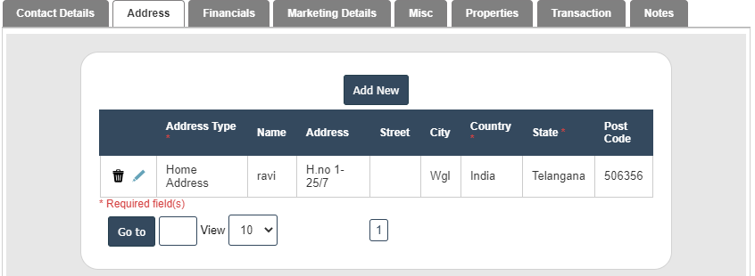 7. After Completing the Contact Details then go to Address then click on the Add New button as shown below.