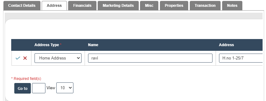 8. After that select Address Type, Name, Address, Street, City, Country, State and Post Code fill the details then click on right symbol.