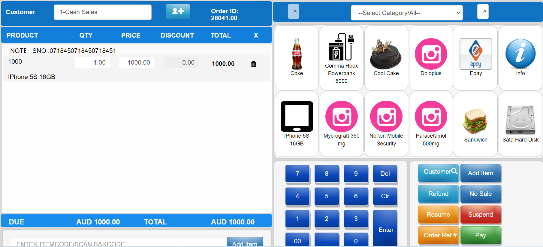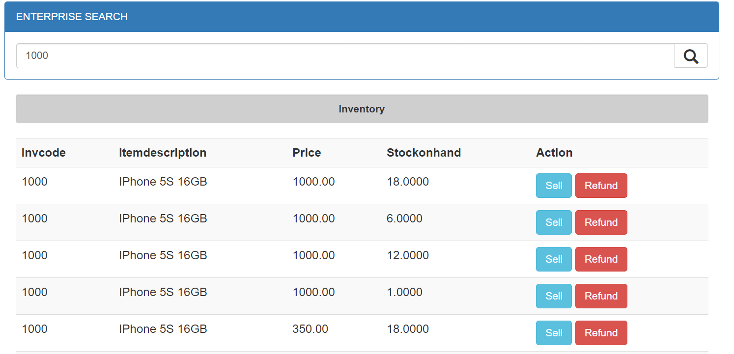3. Any Item code can choose and sell o refund then click on the Sell button then redirected to go to POS.