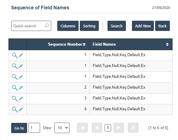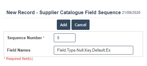 5. Once you have completed the Field Sequence details, click the Add button as shown below.
