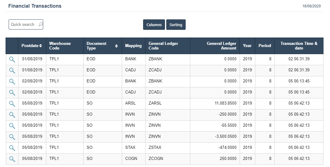 3. View the Financial Transactions Report.