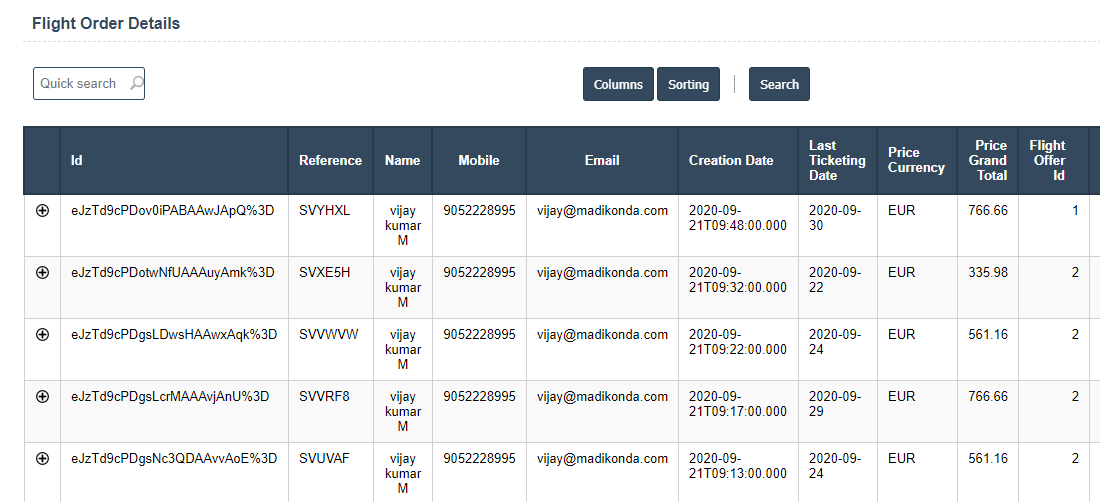 Flight Orders List