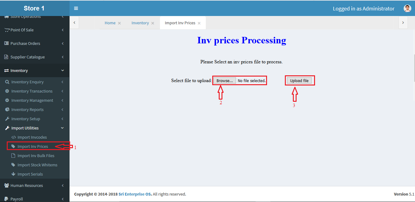 - For Sales & Purchase Stock Import Click on Import Inv Prices.