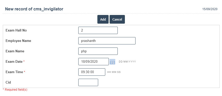 2.Add New : This Button is used for Adding New Invigilator Duties.