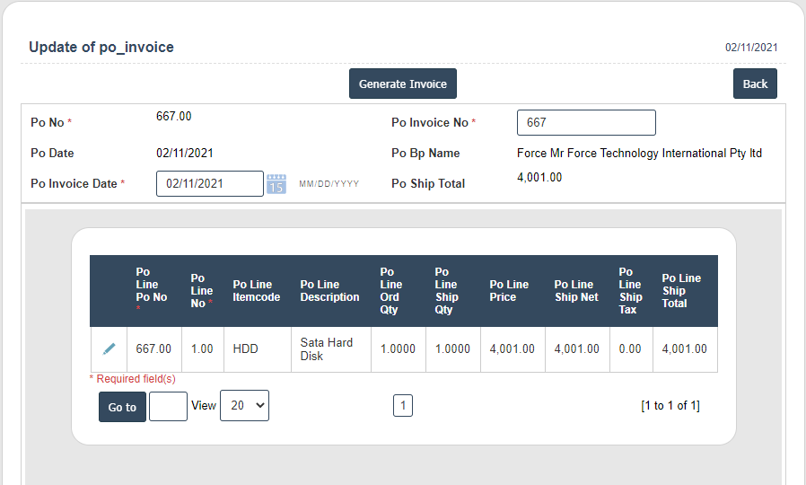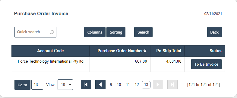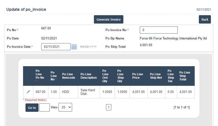1. Go to the back-office and click on the option Purchase Orders - Transactions and then click on the option Invoice Po.