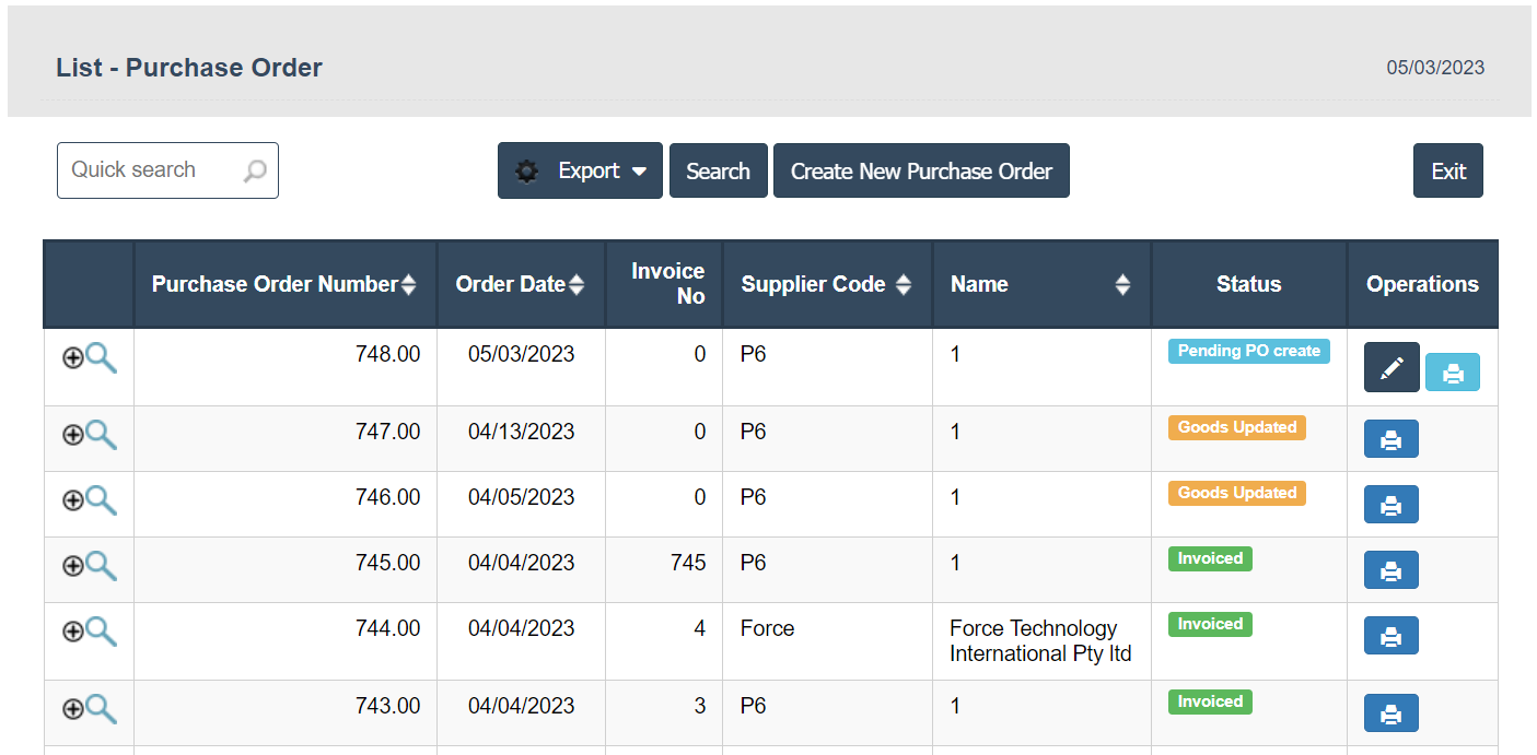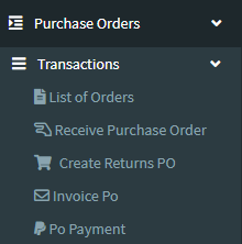 1. Go to the back-office and click on the option Purchase Orders - Transactions and then click on the option List of Orders.