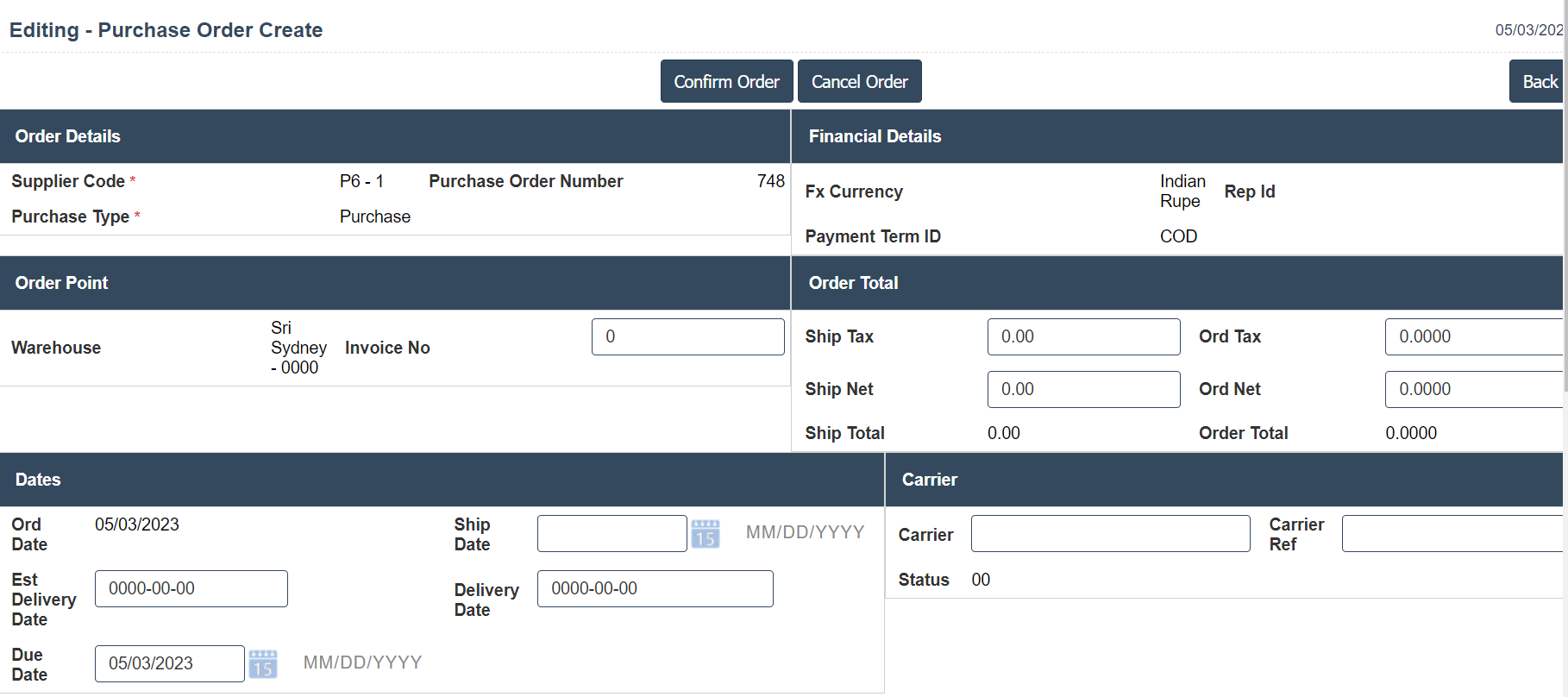 3. In below image click on Create New Purchase Order Button then it will displays the following image.