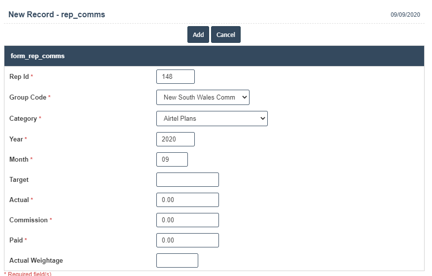 6. Once you have completed the Rep Commissions details, click the Add button as shown below.