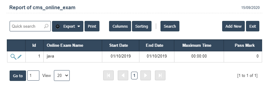2.Add New : This Button is used for Adding New Online Exam.