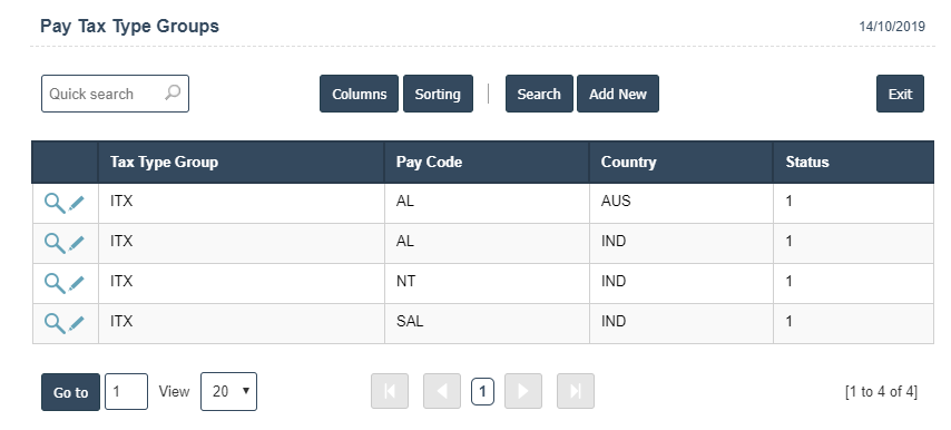2. To add a new Pay Tax Type Groups click on the Add New button as shown below