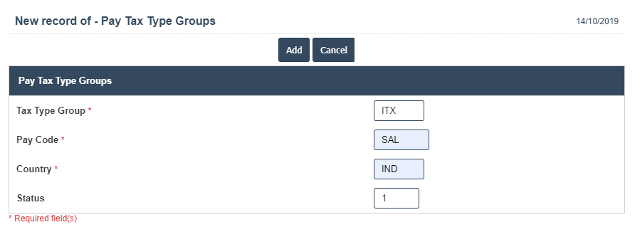 3. A New Pay Tax Type Groups will open the new page and enter the manually all the details.