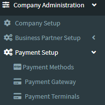 1.Go to the back-office and click on the option Company Administration - Payment Setup and then click on the option Payment Terminals.