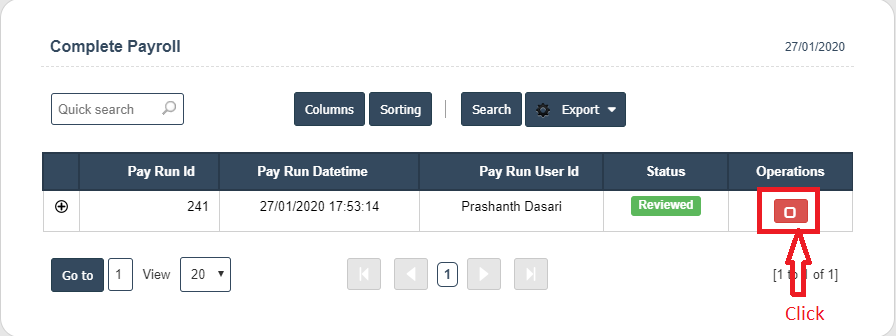 1.After create payroll go to the dashboard and click on the option, payroll after then selecting Transactions then click on the option payroll review.