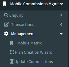 1.Go to the back-office and click on the option Mobile Commissions Mgmt - Management and then click on the option Plan Creation Wizard.