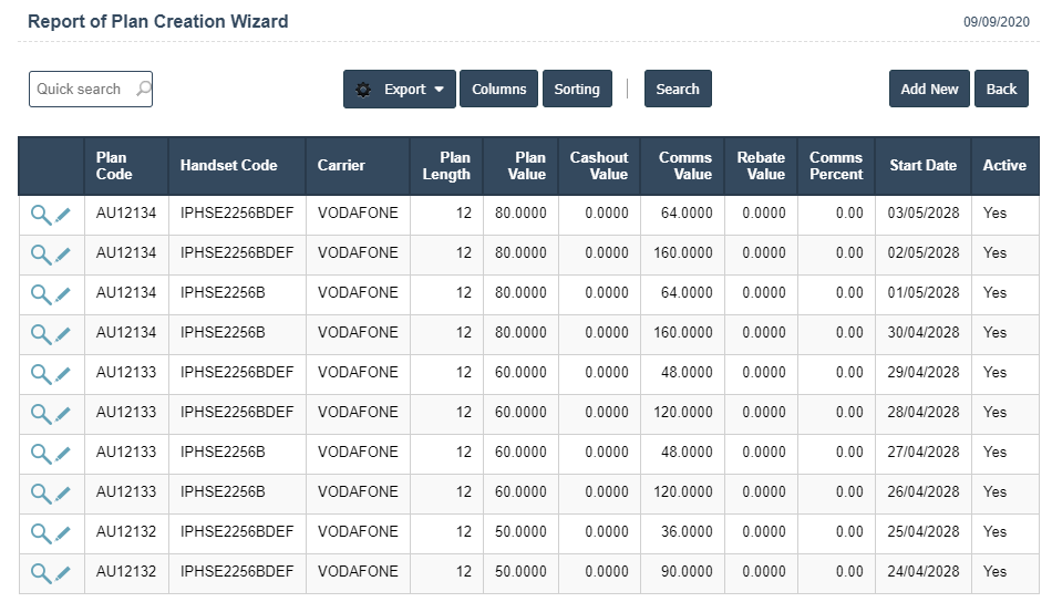 2. Add New : This Button is used to Add New Plan Creation Wizard.