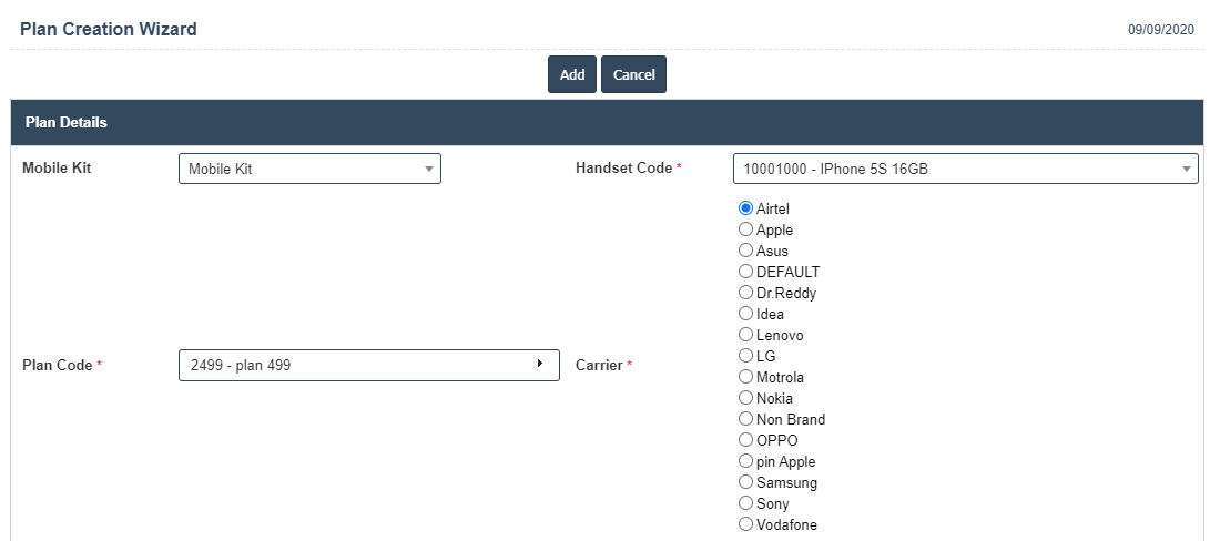 7. Once you have completed the Plan Creation Wizard details, click the Add button as shown below.