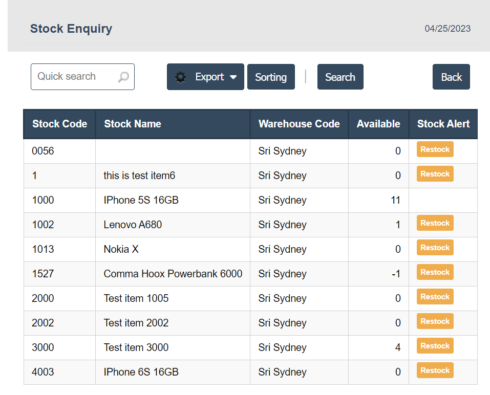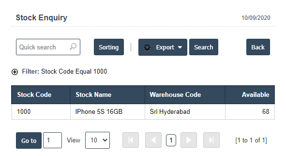 1. Go to the back-office and click on the option Point Of Sale - Enquiry and then click on the option Stock Enquiry.