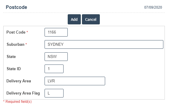 6. Once you have completed the Postal Code details, click the Add button as shown below.