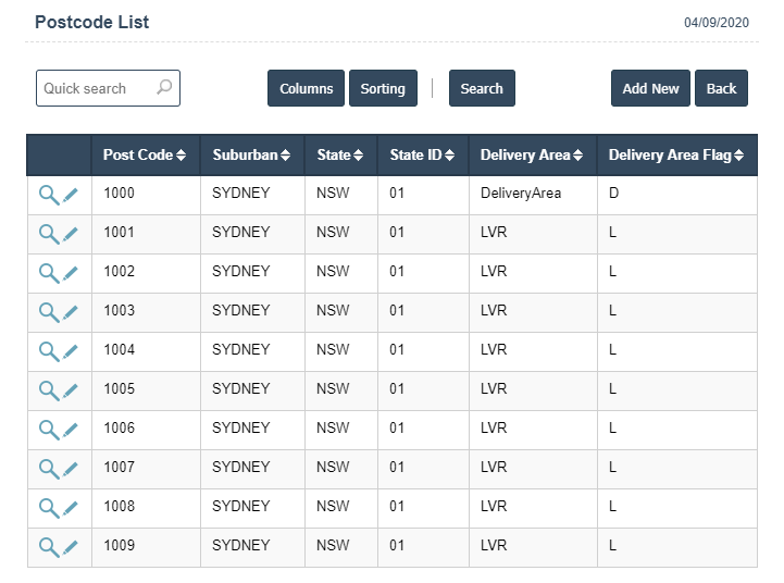 2. Add New : This Button is used to Add New Postal Code.3. In below image click on Add New Button then it will displays the following image.