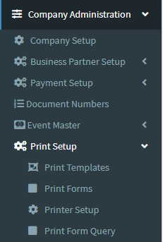 1.Go to the back-office and click on the option Company Administration - Print Setup and then click on the option Print Templates.
