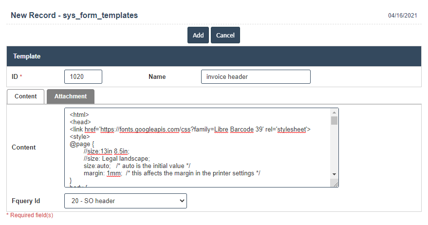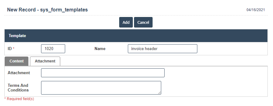 9. Once you have completed the Print Templates details, clicking the Add button as shown below.