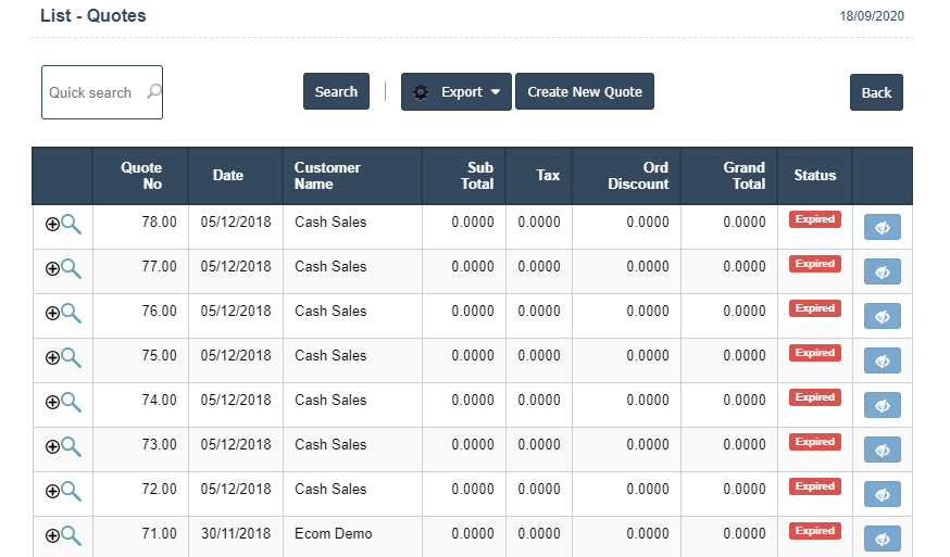1. Go to the back-office and click on the option Quotations - Management and then click on the option Quotes.