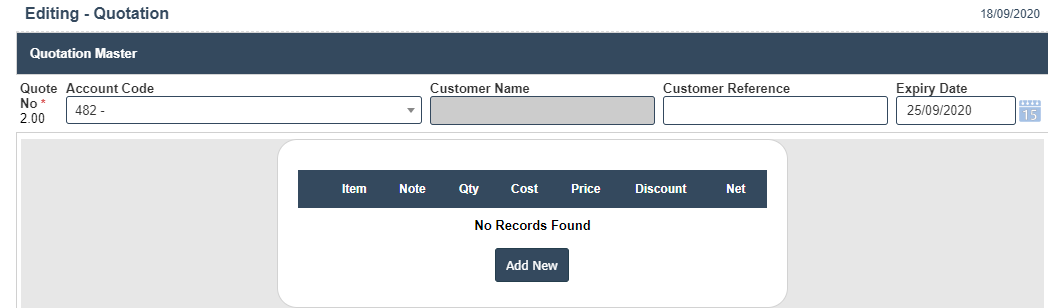 4. Account Code, Customer Name, Customer Reference and Expiry date fill the details then click on Add button it will displays the following image.