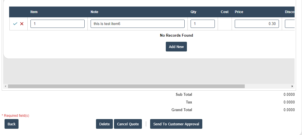 6. After that Item, Note, Qty, Cost, Price, Discount and Net fill the details then click on