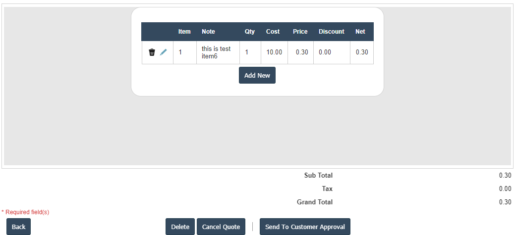 3. In below image click on Create New Quote Button then it will displays the following image.