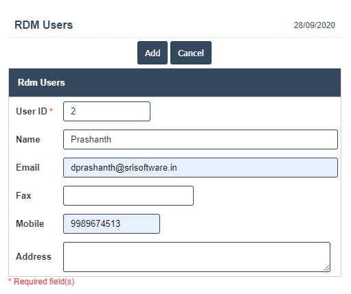 6. Once you have completed the RDM Users details, click the Add button as shown below.