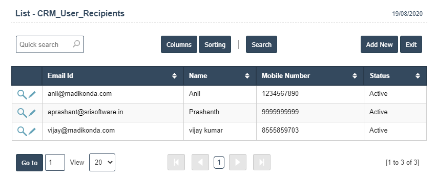 2. Recipients: This Application is used to display User Recipients of details