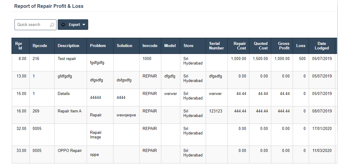 3. View the Repair Profit and Loss Reports.